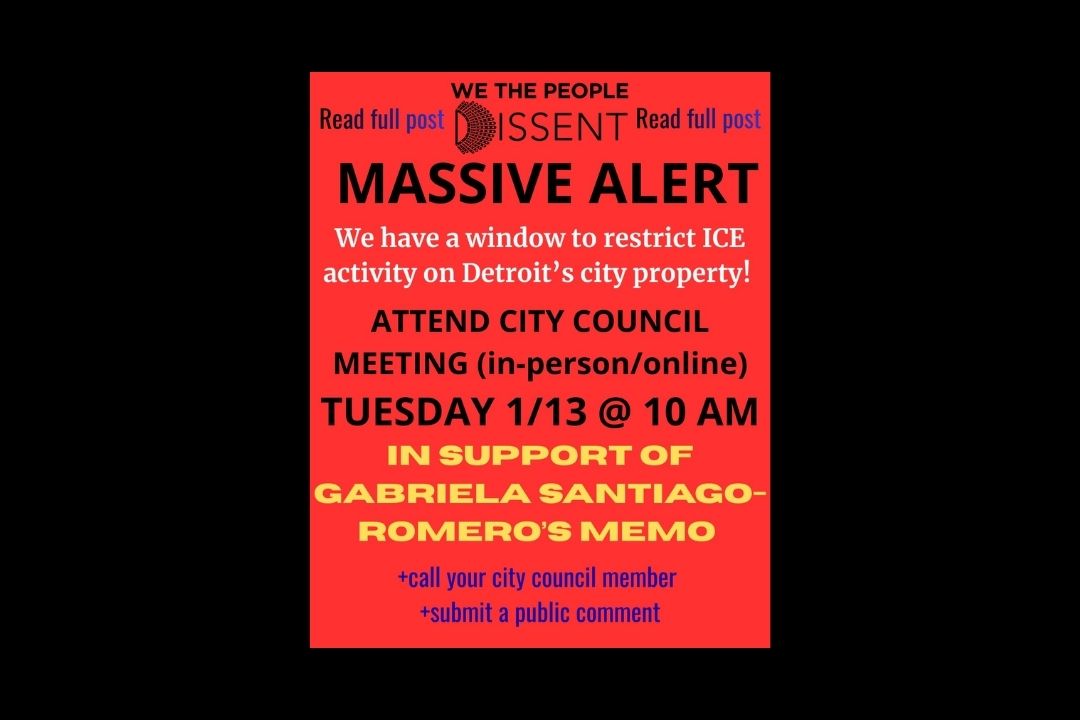 We the People Dissent is a grassroots, non-violent movement fighting for a multiracial democracy where every one of us—in Detroit, Downriver, and across Michigan—can thrive. When extremists try to silence our communities, we rise. When threats to our rights mount, we organize. Because we the people are strongest when we show up together.